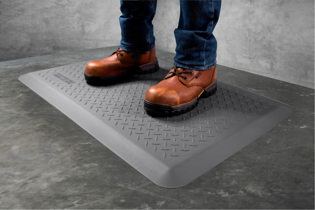 The Maxum is a heavy-duty, anti-fatigue floor mat offering remarkable comfort and safety by helping to reduce back, neck, leg and foot fatigue associated with long-term standing. 100% Made in America, Maxum Premium Performance mats are constructed on 3/4″ Pure Polyurethane and include a diamond plate design for added traction. This special surface tread provides additional safety and secure footing.