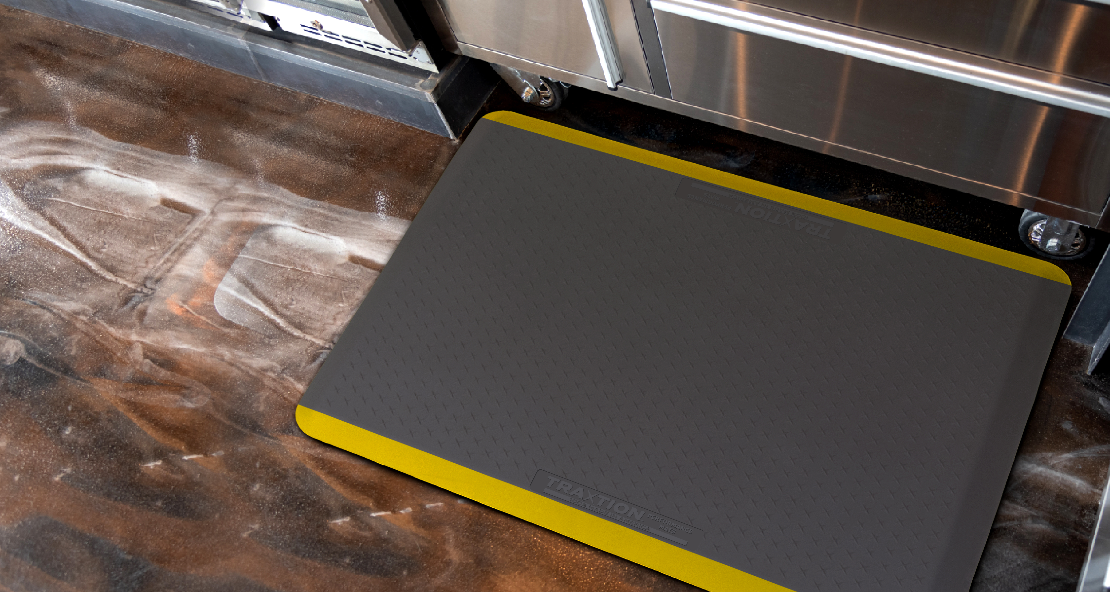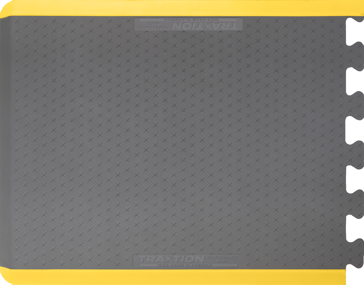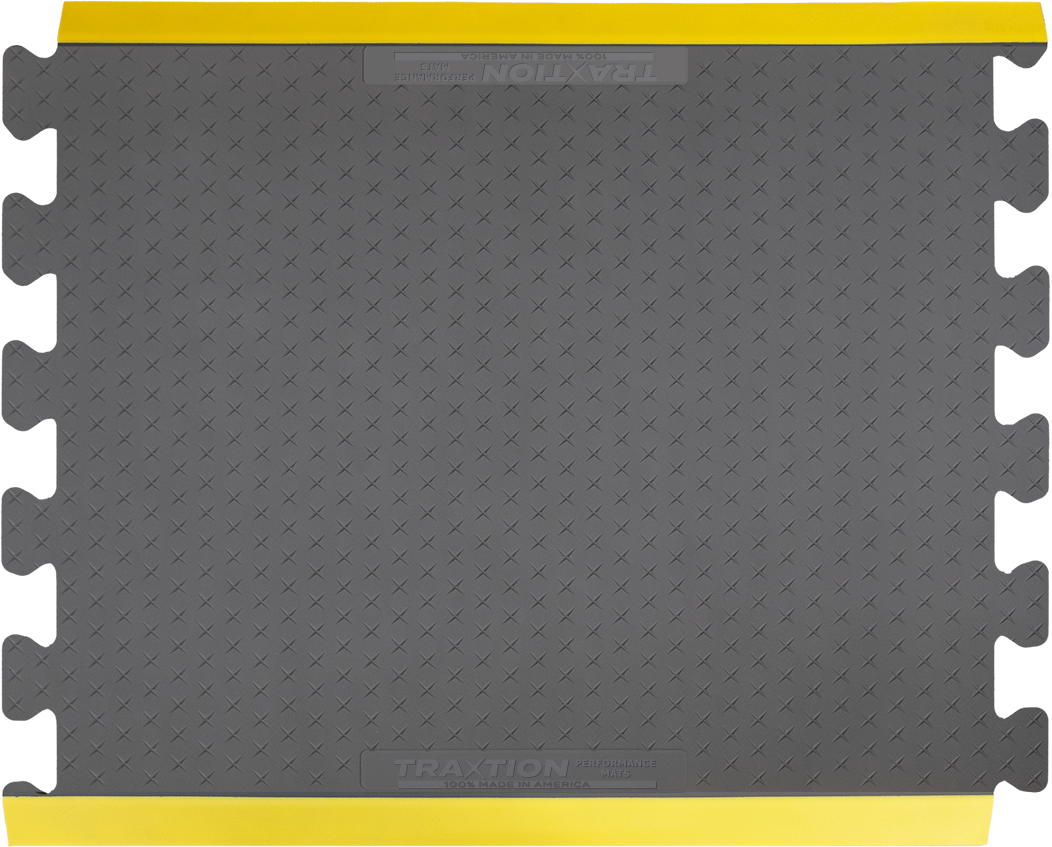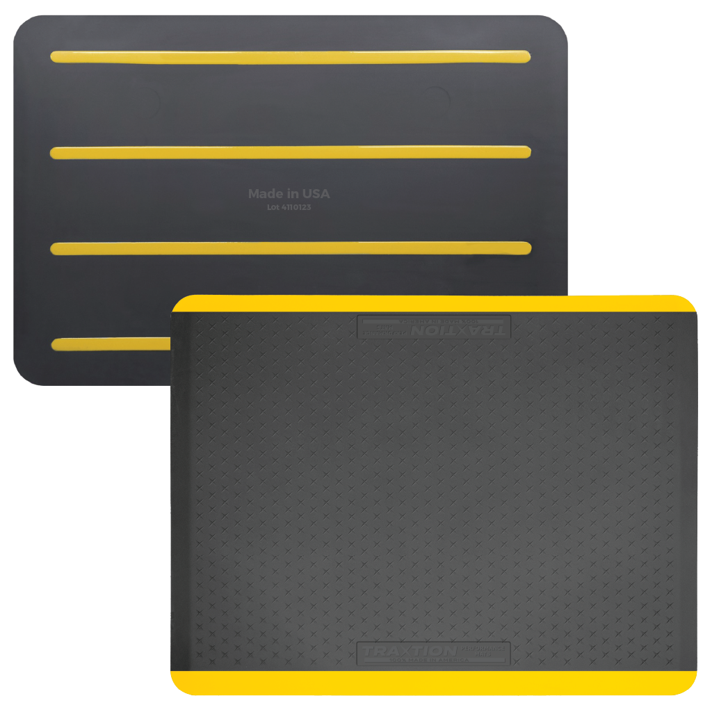 The TRAXTION™ Mat is a heavy-duty, anti-fatigue floor mat offering remarkable comfort and safety by helping to reduce back, neck, leg and foot fatigue associated with long-term standing. 100% Made in America, TRAXTION™ Performance mats are constructed on 3/4″ Pure Polyurethane and include an X pattern design for added traction. This special surface tread provides additional safety and secure footing.